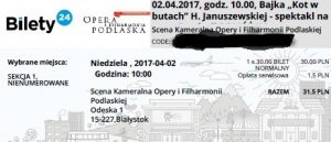 Dnia 2 kwietnia 2017 o godzinie 10.00 i 12.00 w Operze i Filharmonii Podlaskiej odbędzie się charytatywny spektakl „Kot w butach”, z którego całkowity dochód zasili konto Fundacji !